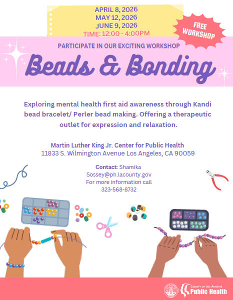 History: The MLK Healing Center was designed and programmed with input from the Willowbrook Community Action for Peace Coalition. The MLK Healing Center was established by DPH West and South LA Regional Health Office in collaboration with the Office of Violence Prevention's Trauma Prevention Initiative team in the Fall of 2018. The Healing Center has become a trusted and safe community space to promote healing and increase access to trauma prevention and intervention services.