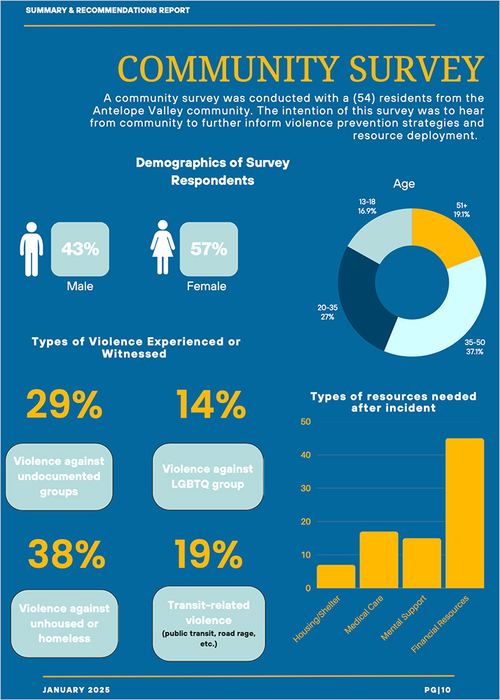 Through ARPA funds, five CBOs were each awarded $1 million to implement holistic safety strategies and student-centered programs to prevent violence and intervene in instances of violence in partnership with school districts in communities experiencing the highest rates of violence in the County. Additionally, OVP implemented a school safety learning community in partnership with the LA County of Office of Education (LACOE) to provide peer learning opportunities with a broader group of school districts. Click here to read the School Safety Transformation Pilot report.